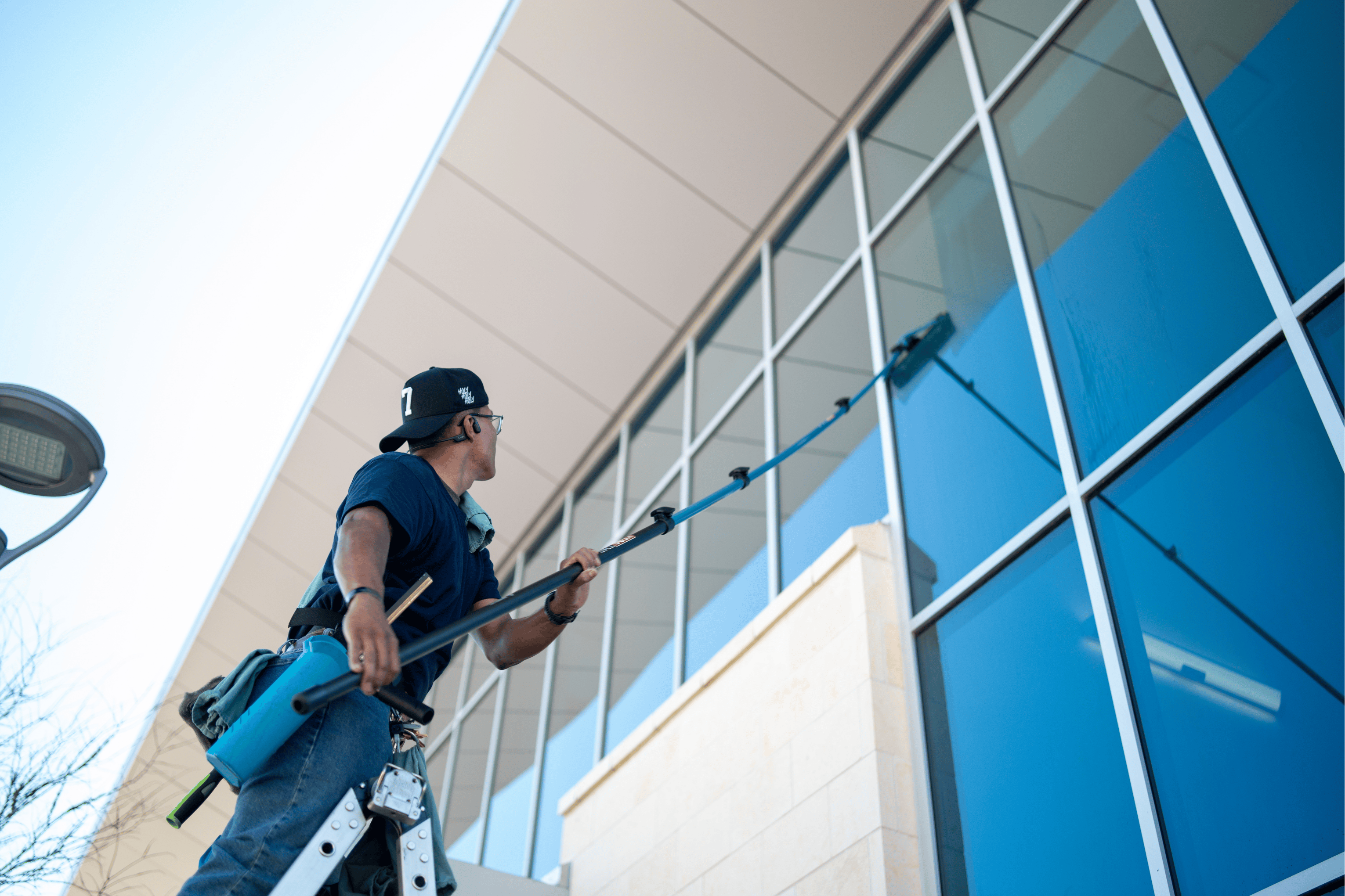 Professional commercial window cleaning services for banks, retail centers, and office buildings across D/FW. Streak-free results delivered safely and on schedule.